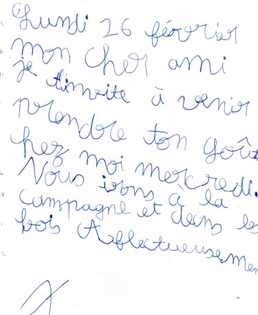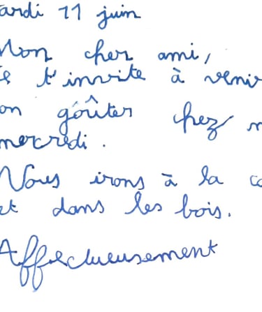 Dans un second temps, différents tests sont effectués, en fonction du niveau de l’enfant: motricité globale et fine, dictée (à partir du ce1), test de vitesse, tests neuro visuels, tests de fluence et stratégie de copie, analyse de la posture, de la tenue du crayon et des production scolaires… Cette étape a lieu avec l’enfant seul et dure 1h30 à 2 h.